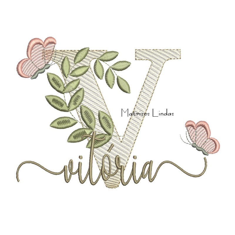 Matriz de Bordado Nome Vitória Folhas e Borboletas
