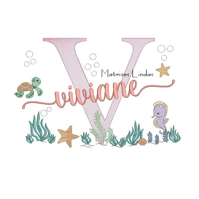 Matriz de Bordado Nome Viviane Fundo do Mar um arquivo digital de matriz de bordado computadorizado, necessário máquina de bordar para a utilização do produto.