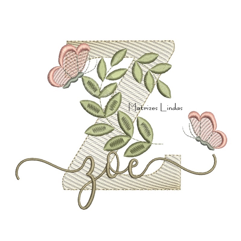 Matriz de Bordado Nome Zoe Folhas e Borboletas