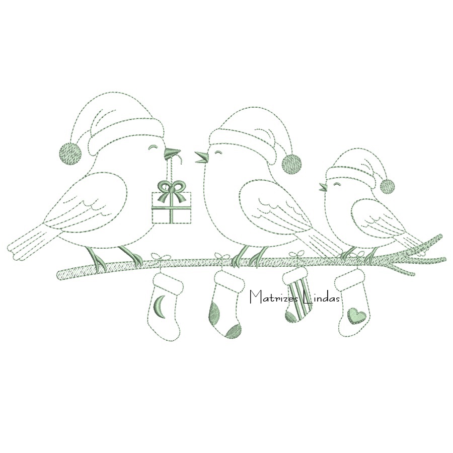 Matriz de Bordado – Passarinhos de Natal Contorno