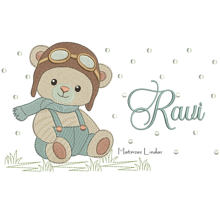 Matriz de Bordado – Ursinho com Poá Nome Ravi